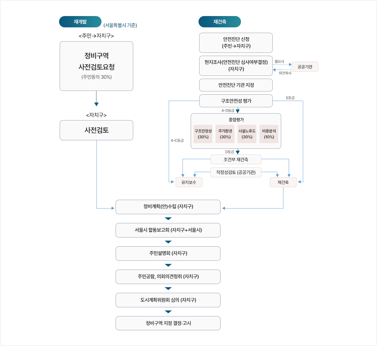 재건축사업은 정비기반시설은 양호하나 노후·불량건축물에 해당하는 공동주택이 밀집한 지역에서 주거환경을 개선하기 위한 사업을 말한다. 재개발과 재건축은 「도시 및 주거환경정비법」 에 근거한다.